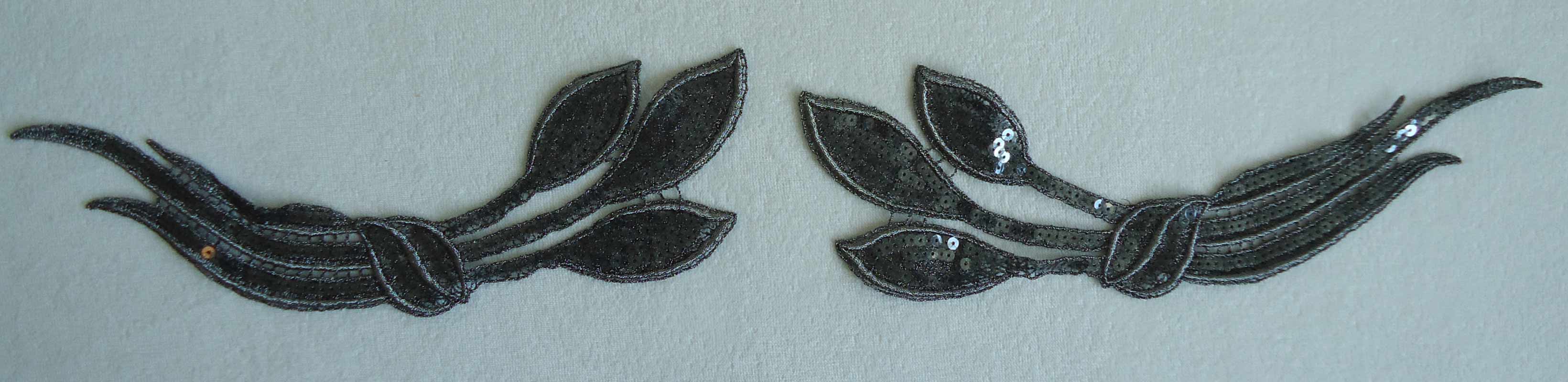 2 gegengleiche Graue Paillettenmotive, 33 x 12 cm.