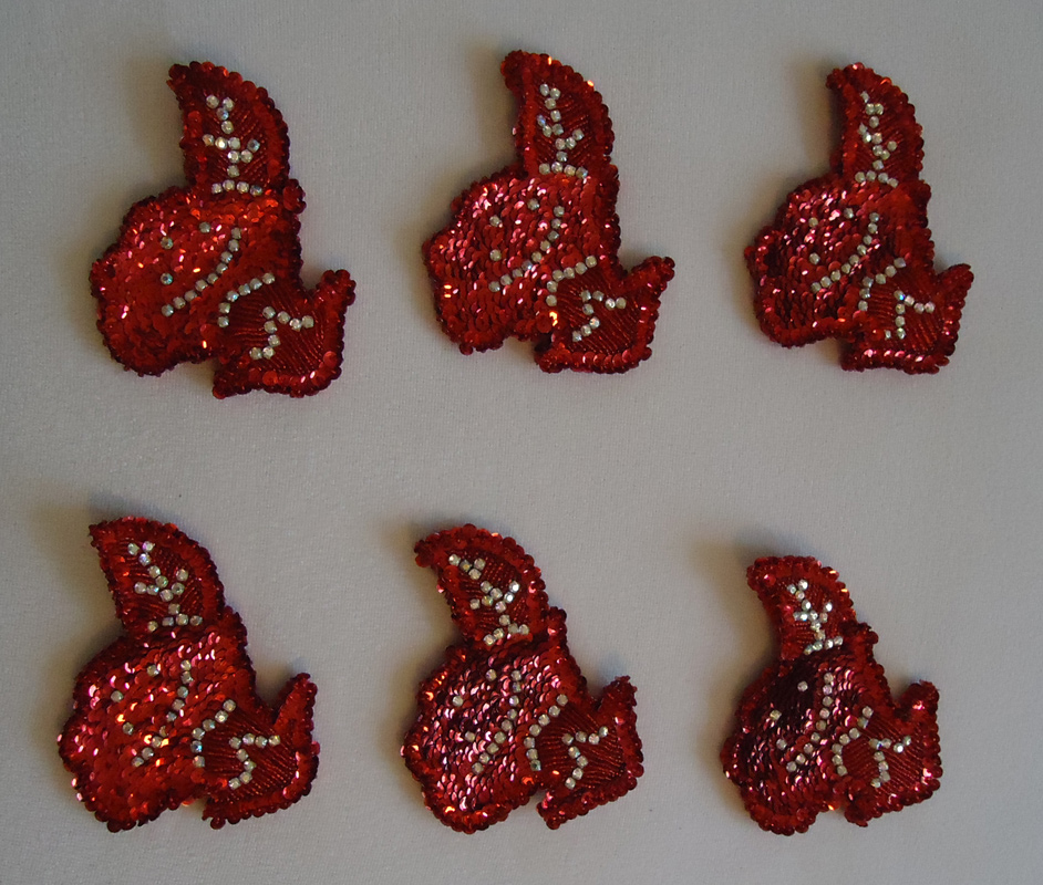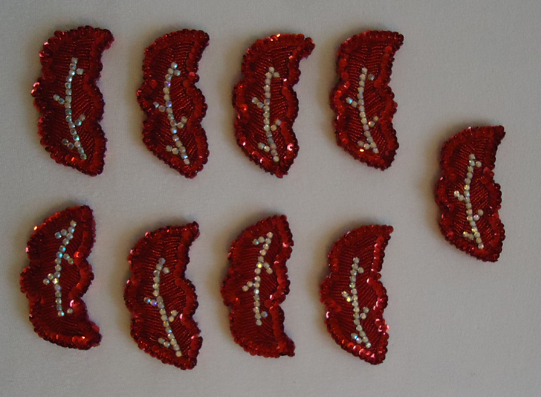 9 Rote ägyptische Paillettenmotive, 10,5 x 5 cm. Die Motive gibt es nur als Gesamtpaket.