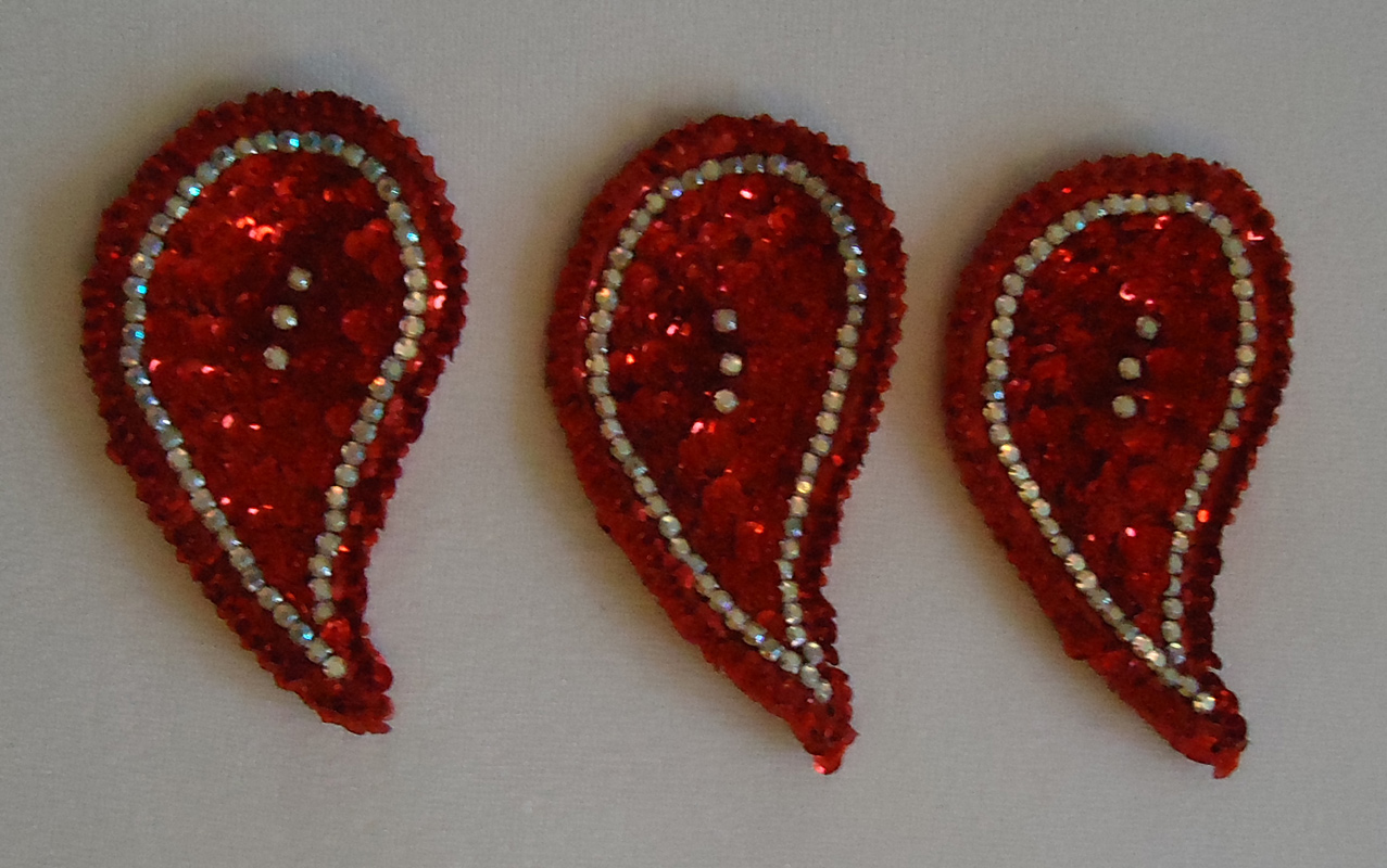 3 Rote ägyptische Paillettenmotive, 13 x 8 cm. Die Motive gibt es nur als Gesamtpaket.