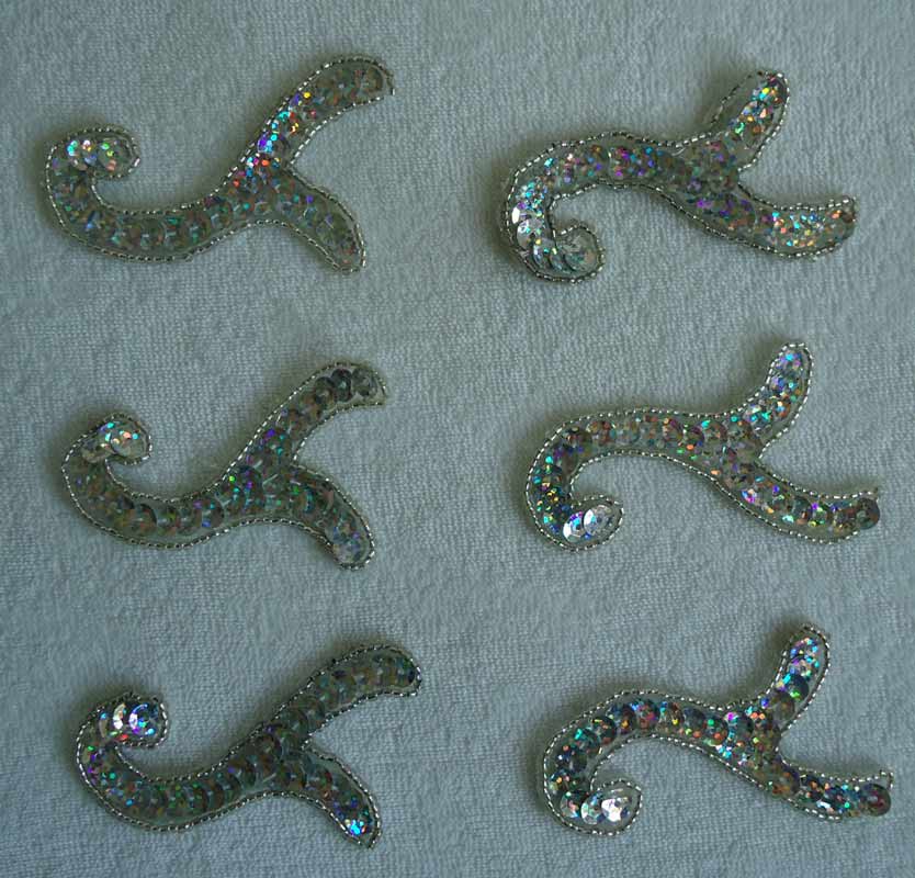 6 gegengleiche Silberne Paillettenmotive, 7 x 5 cm.